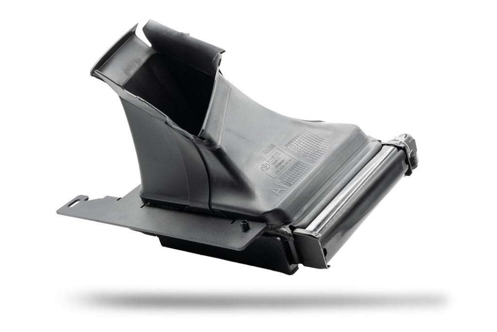Using scan data, we developed the oil cooler kit that has an OEM-type fit and finish for the entire kit. We took special care to ensure the cooler was placed in an area that received excellent airflow with little impact on the vehicle's aerodynamic performance and even utilized the Supra's OEM air duct design from the OEM heat exchanger for a premium fit-and-finish. The engine block oil cooler adapter plate is proudly machined in-house on our 5-axis CNC mills.