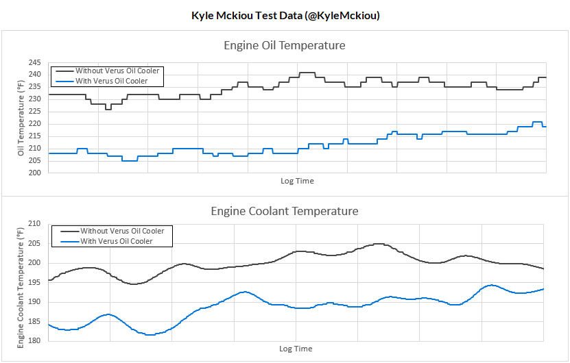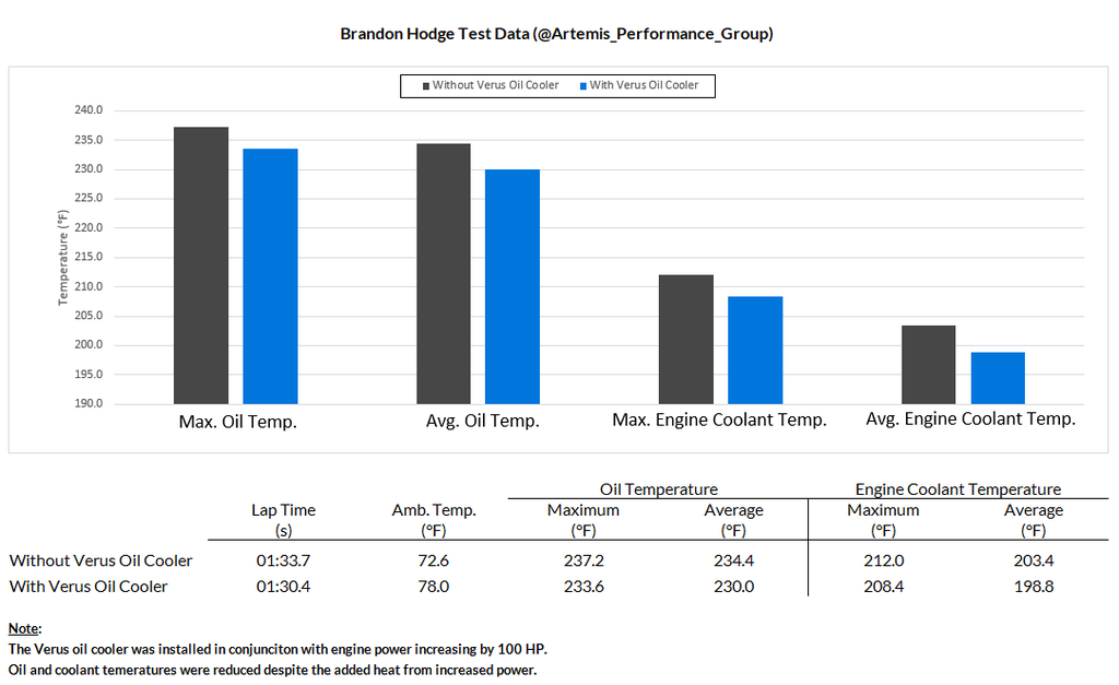 Through on-track data with a variety of drivers, we found the oil cooler to work very well on the car, dramatically reducing both oil and coolant temperatures and improving overall cooling efficiency.
