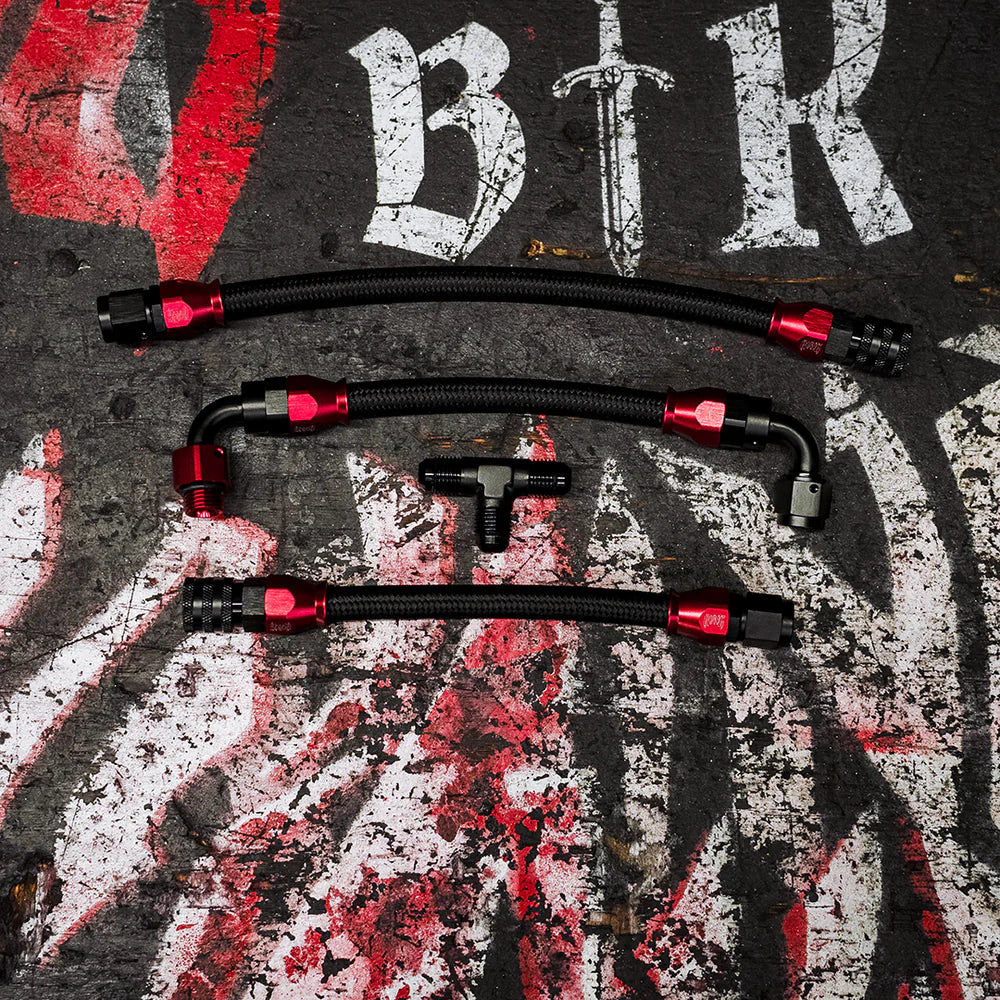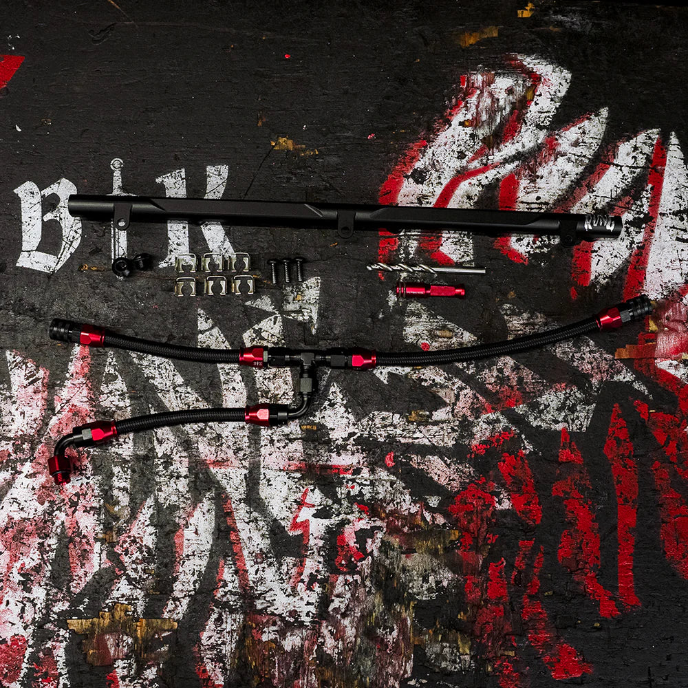 All fuel lines are smooth-bore PTFE paired with motorsport-grade billet fittings. No rubber hose or plastic fittings are used. The kit includes all required hardware and is compatible with popular injector controllers such as ReFlex, AIC, and JB4-based systems.