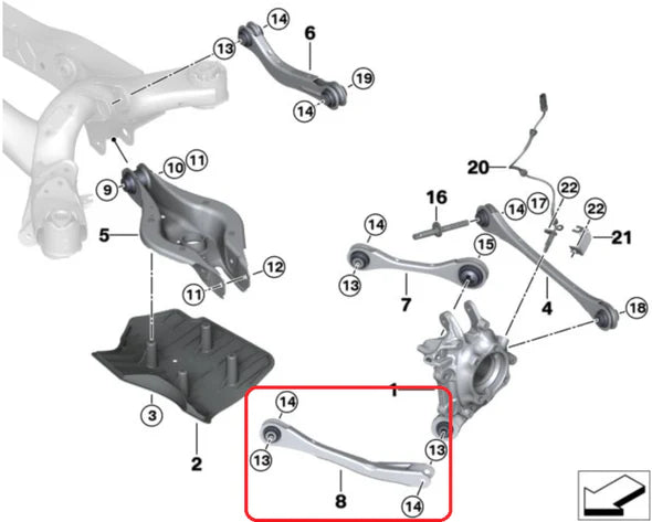 Used in: - BMW 3 Series G20 Limousine - BMW 3 Series G21 Touring - BMW Z4 G29 - Toyota Supra A90 - Toyota Supra A91 Replaces: - 33306878639 - 48711-WAA01 Notice: Sold for off-road, track, and racing applications only. Mounting the wishbone may increase some noise, vibration, and harshness (NVH) in the car. We strongly advise mounting the subframe in qualified and experienced workshops.